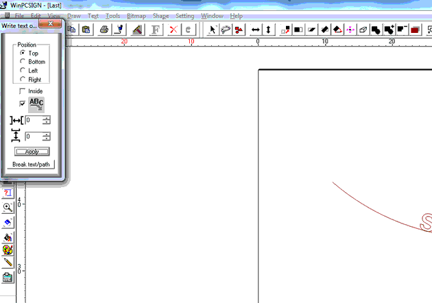 4. Then click "Apply", the text will now be added to the arc. To remove the arc, click on "Break text / path" and select the arc to delete it.