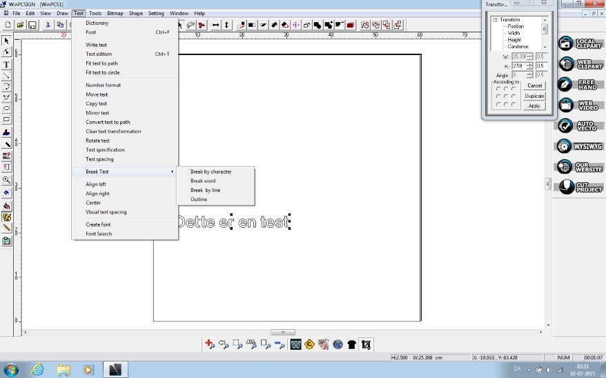 When printing from WinPCSIGN, the text must be in the lower left corner. The default setup in the program is set to make Panels / Layers for every 12 mm. This should be changed so that there is the width of your cutting plot, for example. 600 mm, 1200 mm or 1700 mm. (See illustration in the picture)